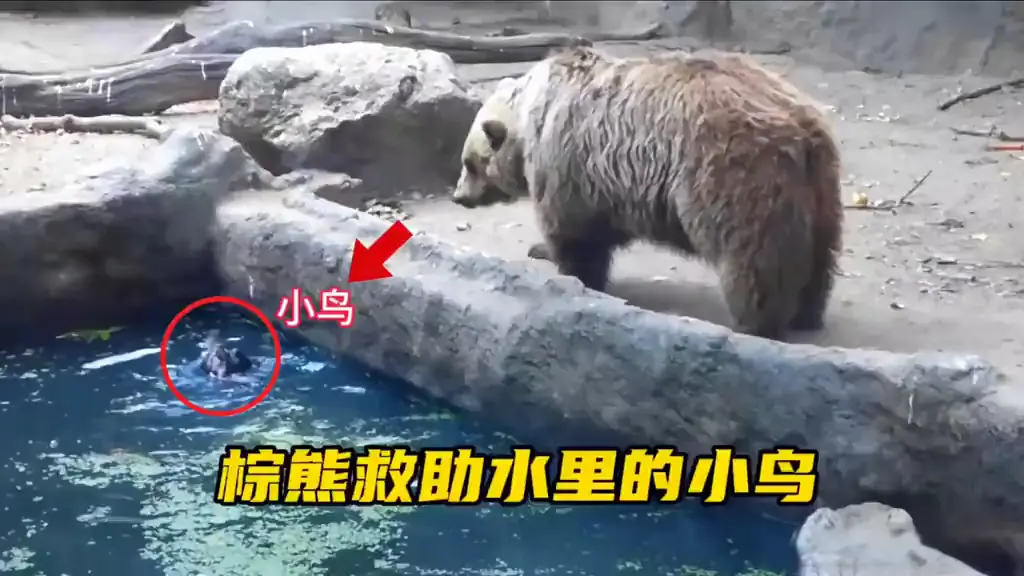 尽管两者属于不同的物种,但棕熊却毫不犹豫地伸出了援助之手。只见它趴在水池边,用手掌小心翼翼的将小鸟捞起,生怕对它造成伤害。居然还用嘴轻轻的叼着它,把它从死神的手中夺回了生命。