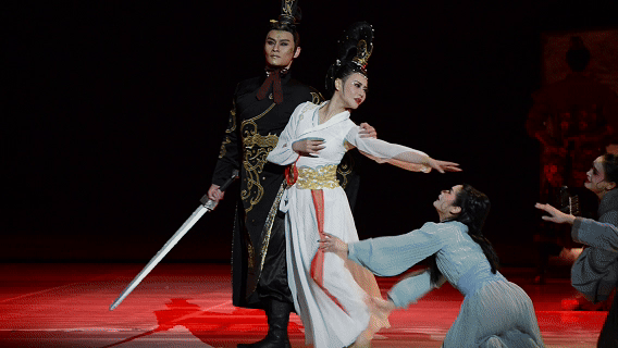 中国古典舞的风格,汉代曲裾、古代踏歌,以歌、舞、礼、乐、诗为载体贯穿全剧,使整个舞剧呈现出浓郁东方美学意味。